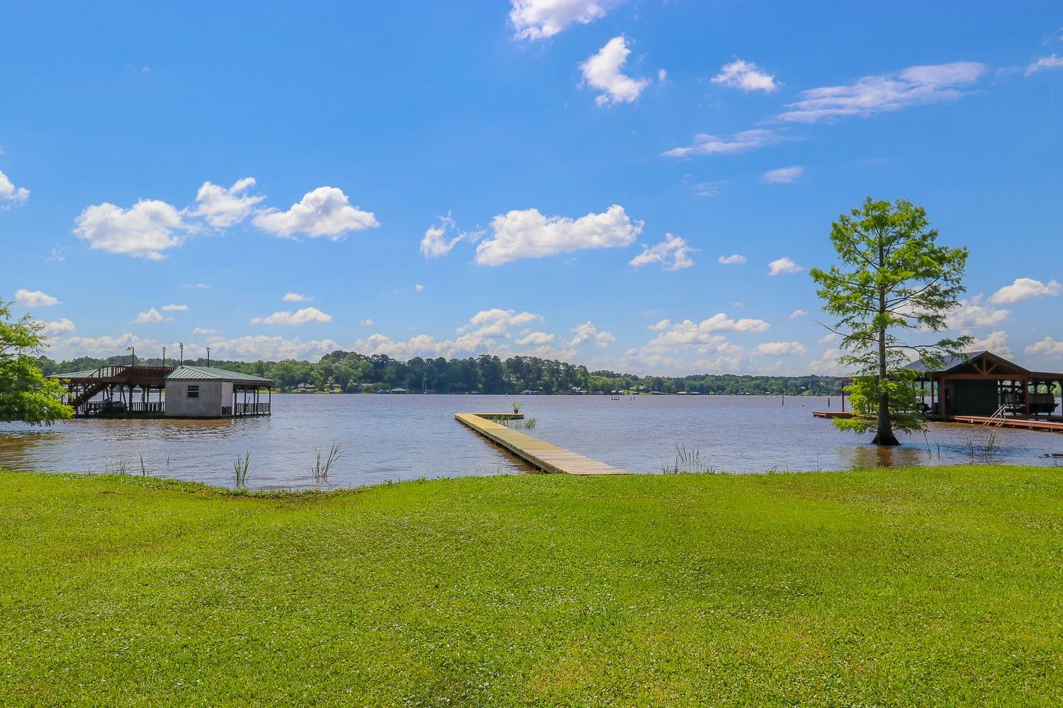 Lake Cherokee, a private lake owned by its shareholders, is located 120 miles east of Dallas, and 60 miles west of Shreveport, La. The Gregg County Airport is nearby with access for commercial (American Eagle) and private aircraft. The Lake Charter was established for 1500 shares of stock accompanied by a lease that extends from October 1st to September 30th, and is renewable each year. Lake Cherokee is now the home of more than 800 families. The Lake is approximately 12 miles long with more than 100 miles of shoreline and over 50 miles of lake roads.