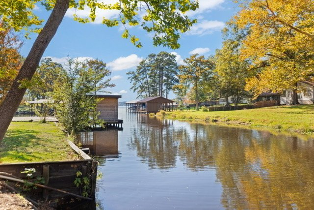 Set among trees with a peaceful view down a quiet cove, it feels tucked away yet inviting — a place to slow down, settle in, and feel the comfort of lake living.