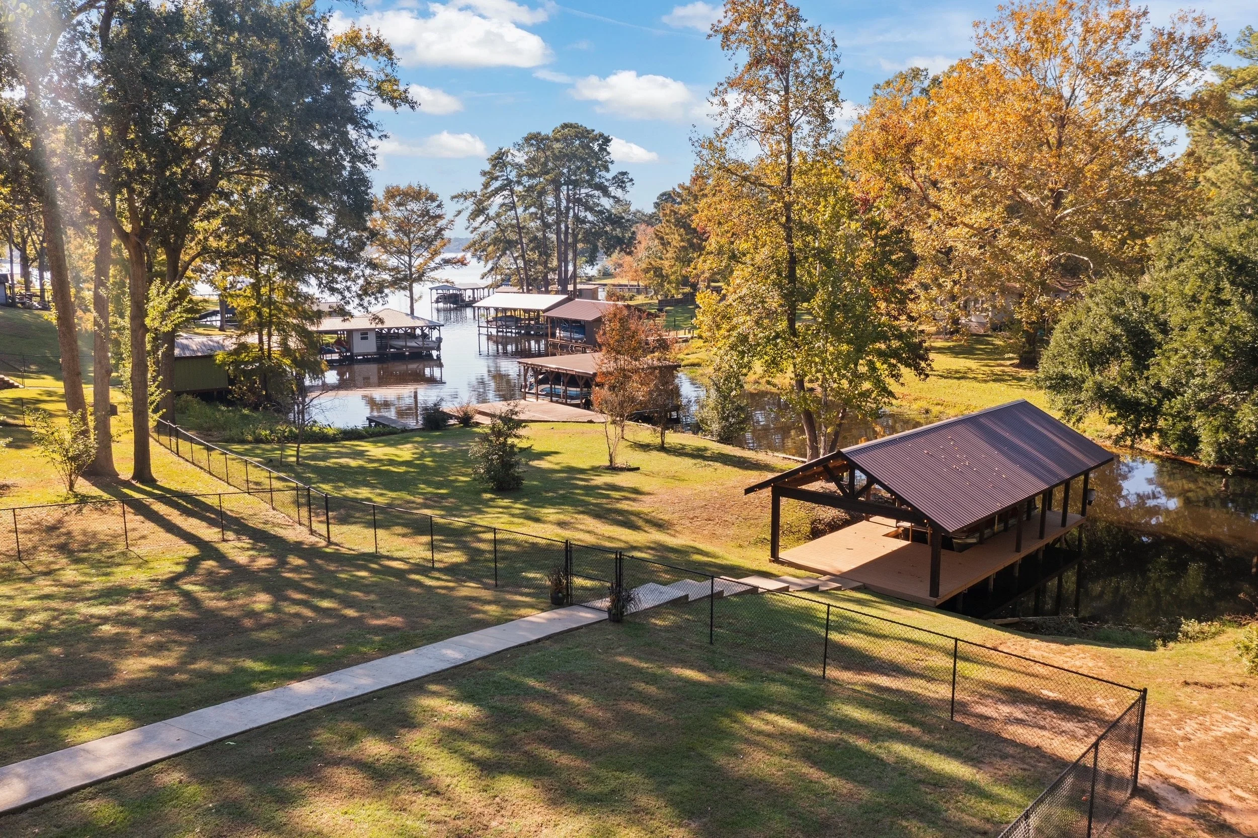 Outside, the lakeside lifestyle shines. A covered patio made for morning coffee and quiet evenings, a fenced yard for pets and play, and an easy stroll down to your boathouse on dredged shoreline.